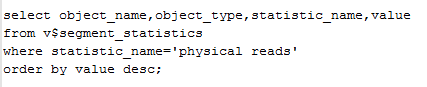 从上面的查询可以看到相应的统计名称,使用下面的查询语句就能得到读取物理I/O最多的段: