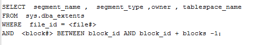 P2代表Oracle正在写入的BLOCK号,如果BLOCK号不是1,则可以通过如下查询查出Oracle正在写入的对象是什么: