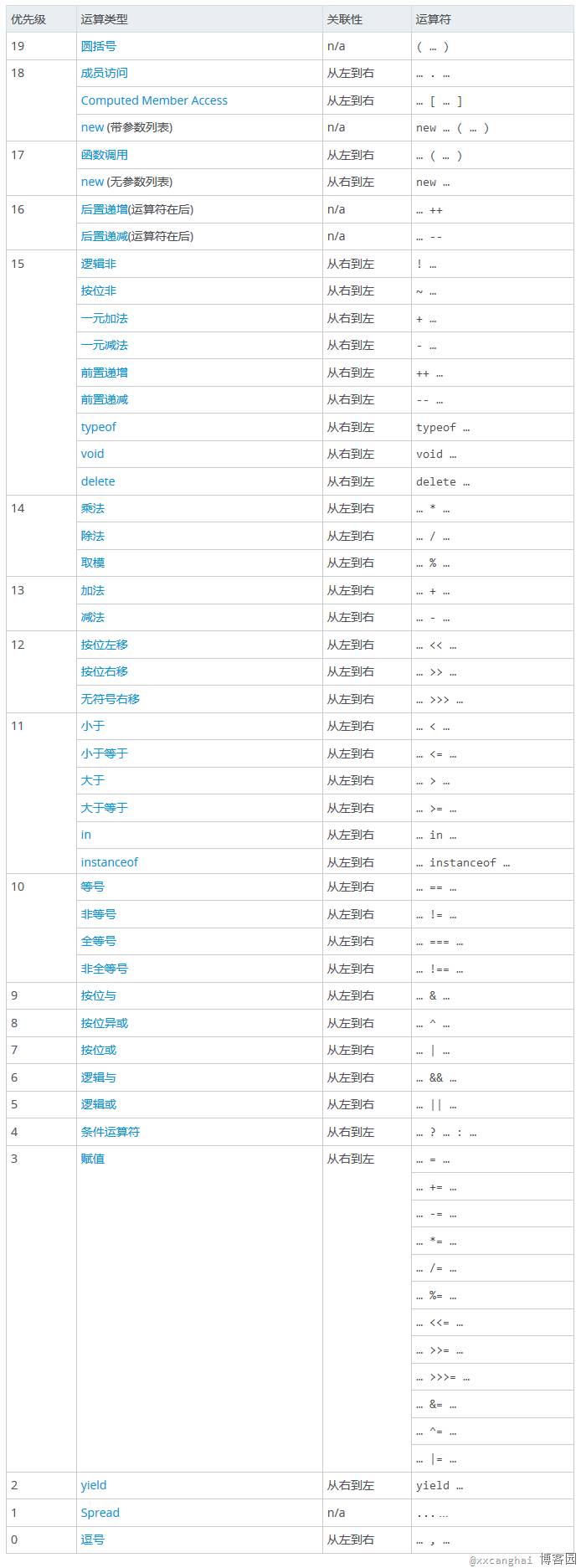 参考链接:https://developer.mozilla.org/zh-CN/docs/Web/JavaScript/Reference/Operators/Operator_Precedence