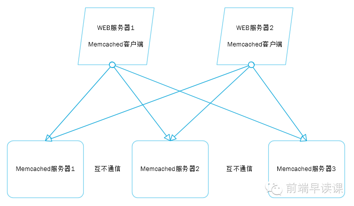 Memcached实现分布式缓存,缓存服务器之间是互不通信的,也就是我们可以方便的通过增加Memcached服务器对系统进行扩展。
