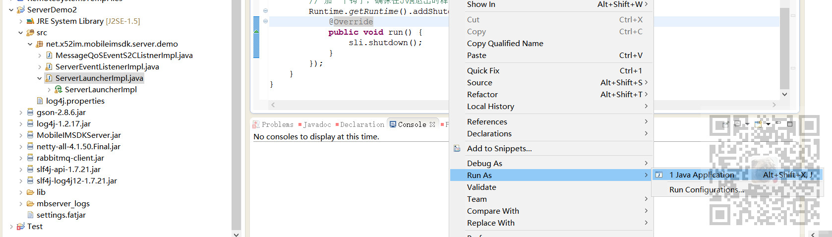 然后在src下包下的ServiceLauncherImpl中右键Run As -Java Application