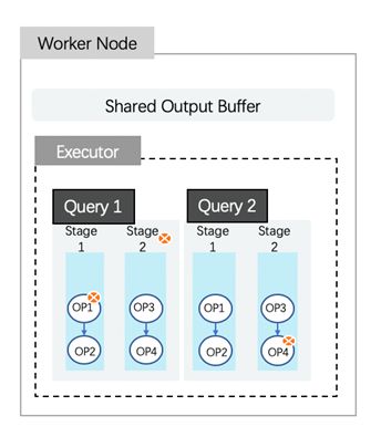 AnalyticDB worker接收coordinator下发的任务, 负责该任务的物理执行计划的实际执行。这项任务可以来自不同的查询, worker会将任务中的物理执行计划按照既定的转换规则转换成对应的operator,物理执行计划中的每一个Stage会被转换成一个或多个operator。