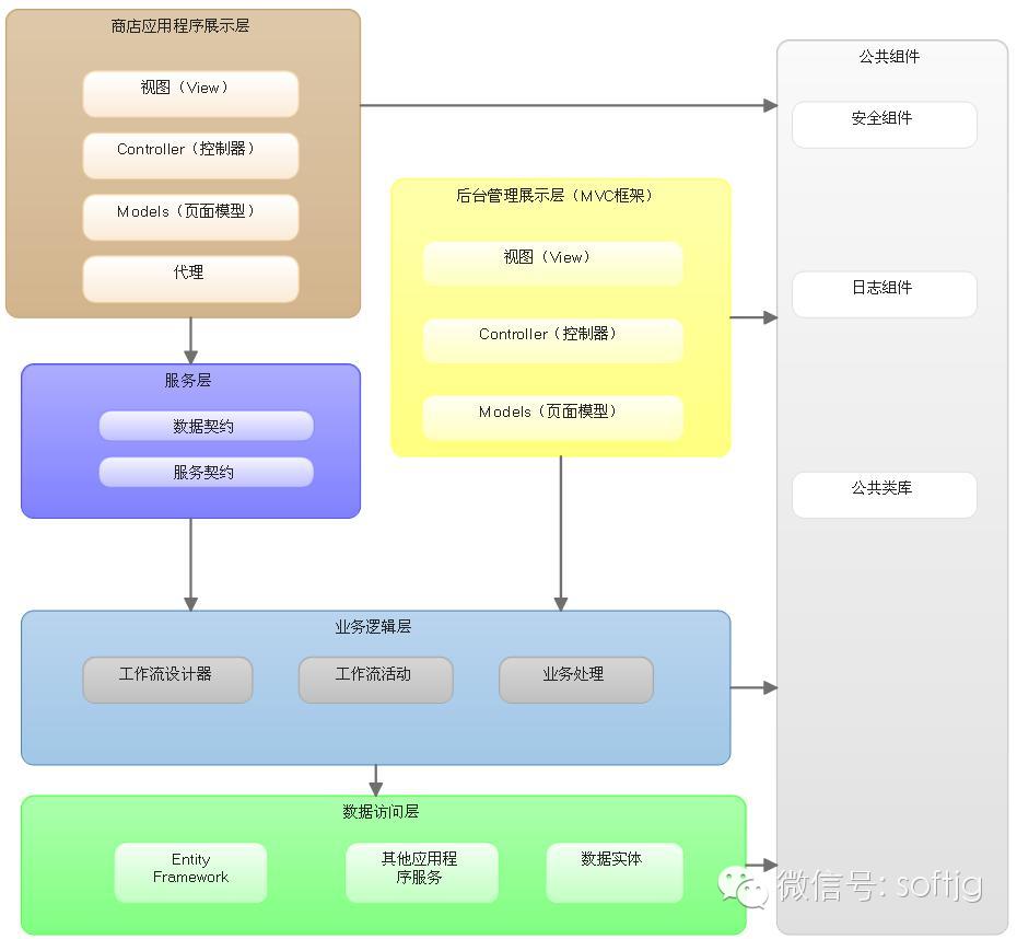 我想至此,你应该明确了(一)中,为什么后台应用程序直接訪问业务逻辑层,而商店应用程序须要通过服务层訪问业务逻辑层了,由于伴随数据訪问量增大。我们能够将服务依据功能须要,部署在多个server上。以缓解訪问压力,而后台应用程序不会出现訪问量增大的现象。