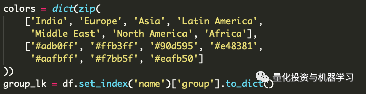 接下来,让我们根据组添加值、组标签和颜色。使用 colors 和 group_lk 为条形图添加颜色。