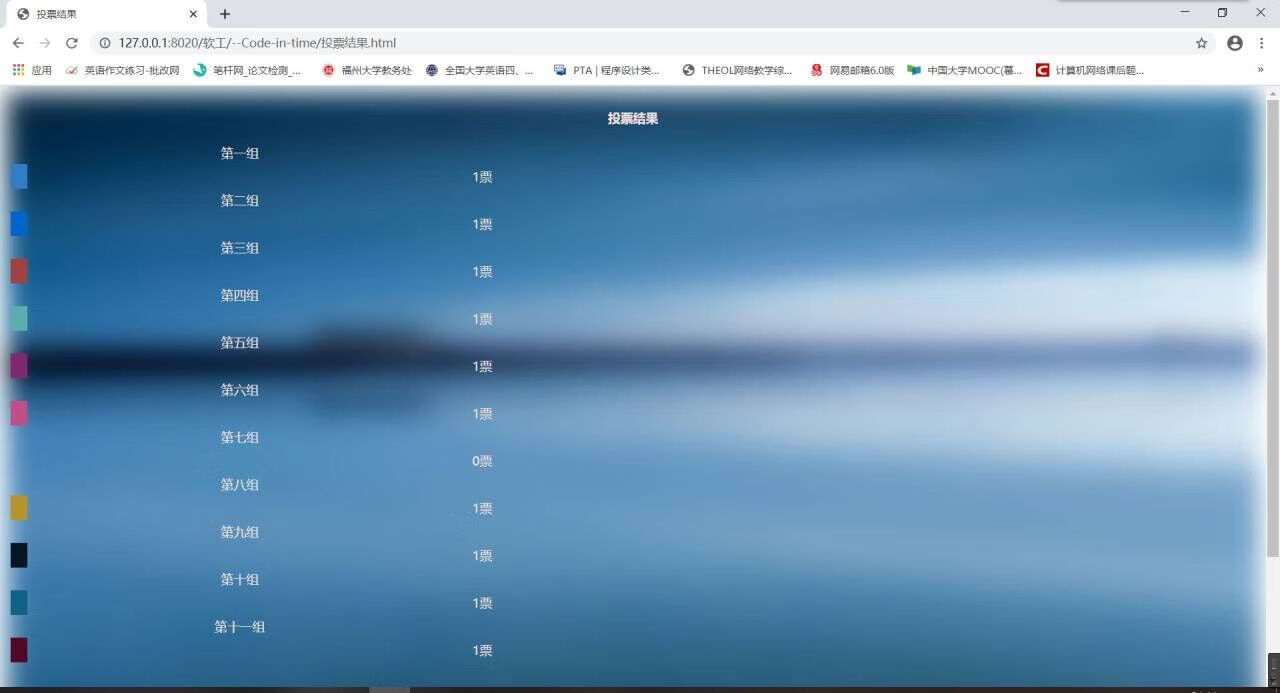| 这个作业的目标 | 现场设计一个符合条件的投票系统,并且显示投票结果。 |