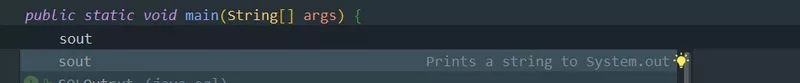 IDEA提供了强大的实时代码模板功能,并且原生内置了很多的模板,比如,当你输入sout或者psvm,就会快速自动生成System.out.println();和public static void main(String[] args) {}的代码块。
