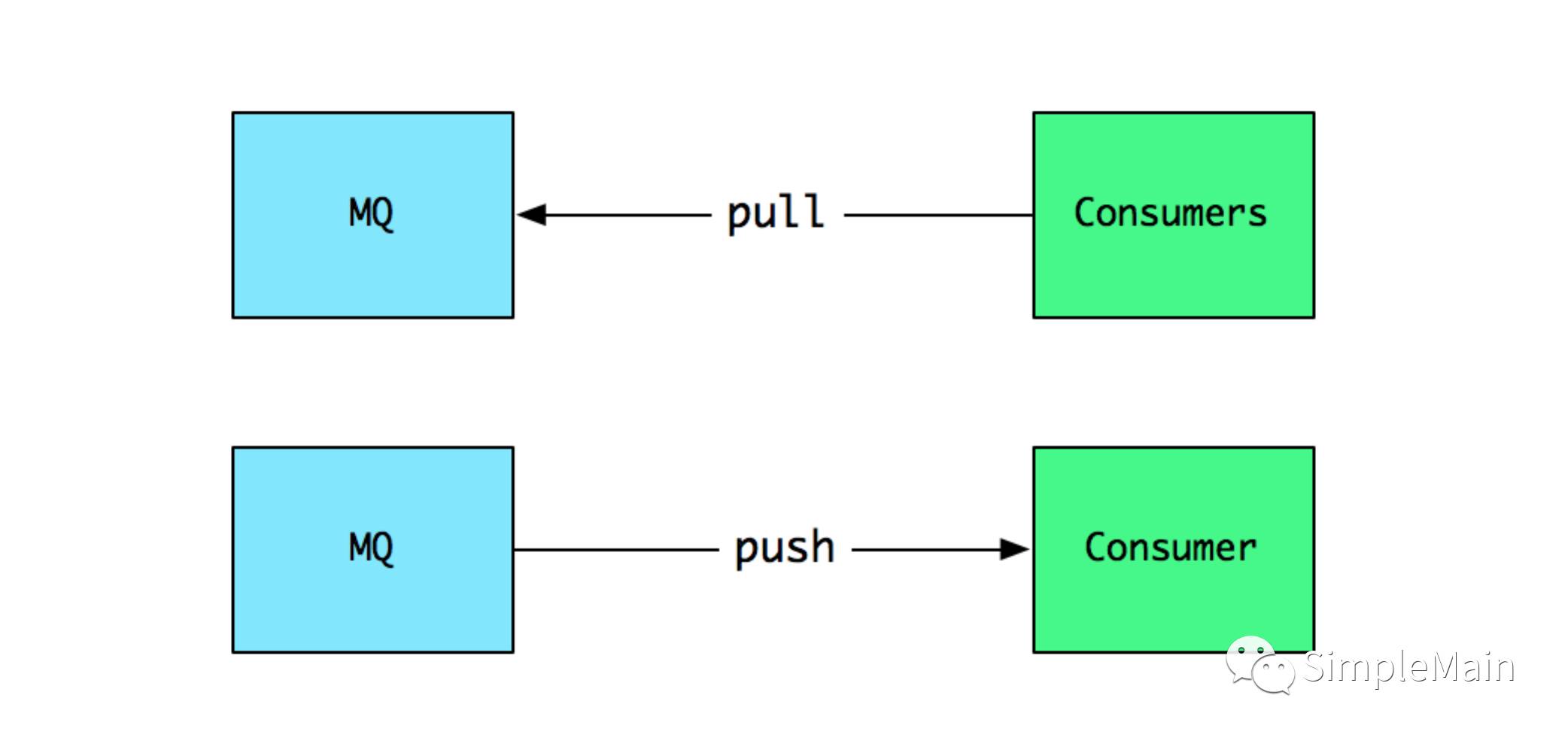 当MQ要把数据给消费者的时候,就涉及到数据的传递方式。一种是MQ主动的将数据推给消费者;而另一种,则是消费者主动去拉取。两种方式各有优缺,我们就一个个的来讲。(无非就是在爱情中谁主动的问题^_^)