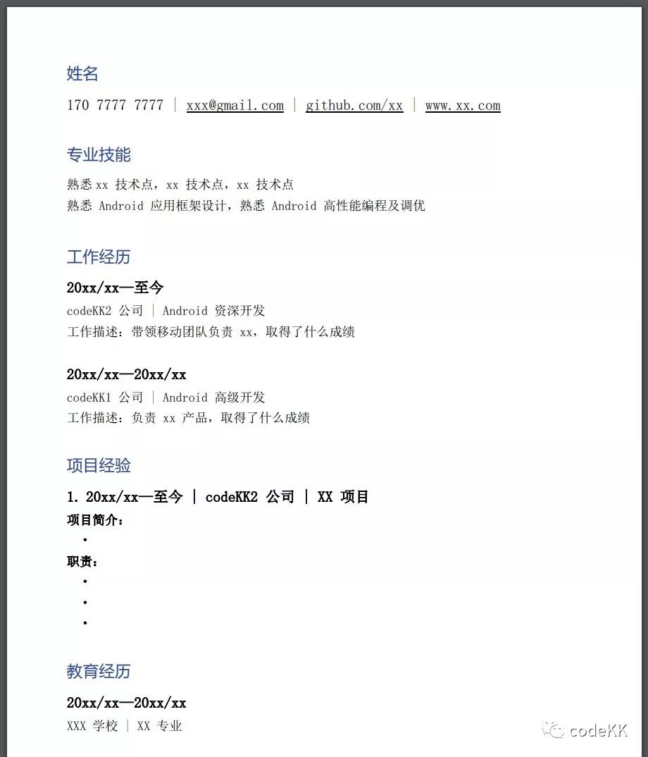 以上模板 Word、PDF、Markdown 版均可从 https://github.com/Trinea/trinea-download/tree/master/resume 下载。