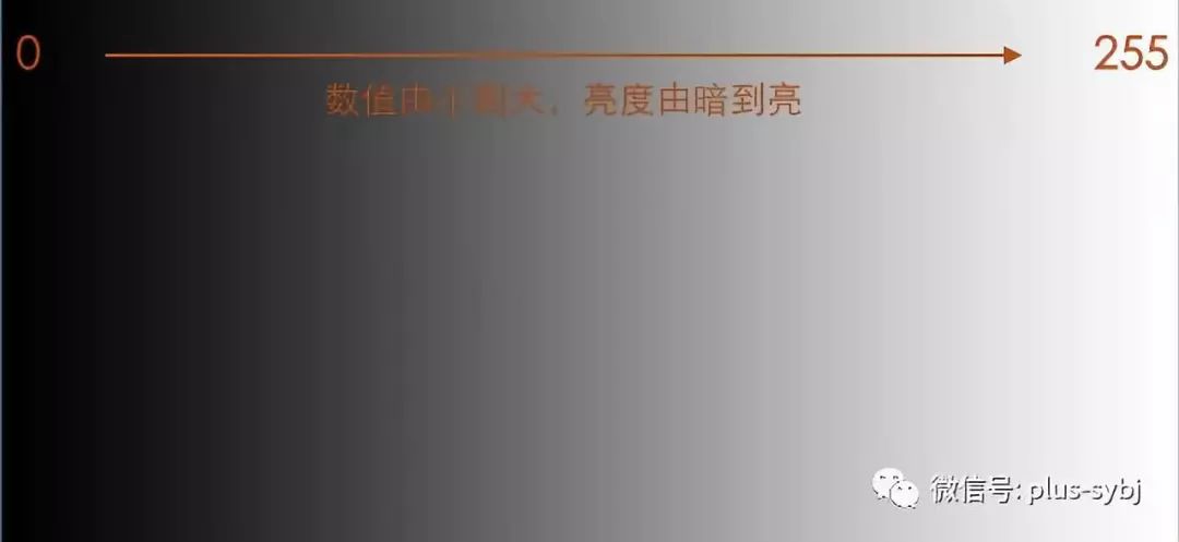我们平时在看一张照片或者对某一个场景的亮度描述一般会是很亮、挺亮、挺暗、很暗等等这些形容性的词语,但对于机器来讲这样的描述基本就是黑人问号了。那机器是如何表示亮度的呢?就是用数值,在数值化里面,亮度被分为0到255共256个数值,数值越大,亮度越亮,0表示不发光,是最暗的纯黑色,255表示发最强光,是最亮的纯白色,而中间的数值就代表不同亮度的灰色。如下图: