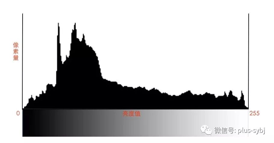 直方图在数码摄影中是一个非常有用的工具,通过直方图可以清楚地看到照片上亮度信息,进而判断照片是否欠曝或者过曝,也就是说,在拍下一张相片后,及时查看直方图,可以有效判断照片的曝光情况。我们通过相机显示屏、LR、ACR、PS、手机后期的APP等等方式都可以看到相片直方图的情况。如图就是直方图的例子: