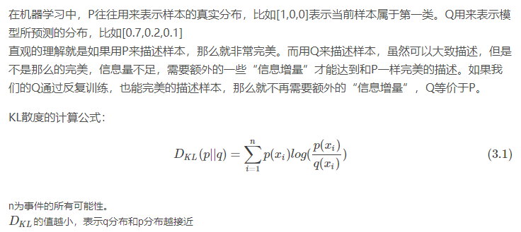 相对熵又称KL散度,如果我们对于同一个随机变量 x 有两个单独的概率分布 P(x) 和 Q(x),我们可以使用 KL 散度(Kullback-Leibler divergence)来衡量这两个分布的差异。