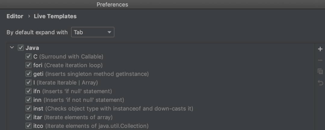 Java 实时模板简化:不再需要搜索 Java 相关模板,因为新的 Java 节点包括所有普通、环绕、其他、输出和迭代组。使用者将更容易找到适合需求的实时模板,也可以使用单独的 Groovy 节点