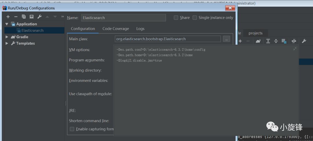 在 Elasticsearch 源码目录下打开 CMD,输入下面的命令启动一个 debug 实例