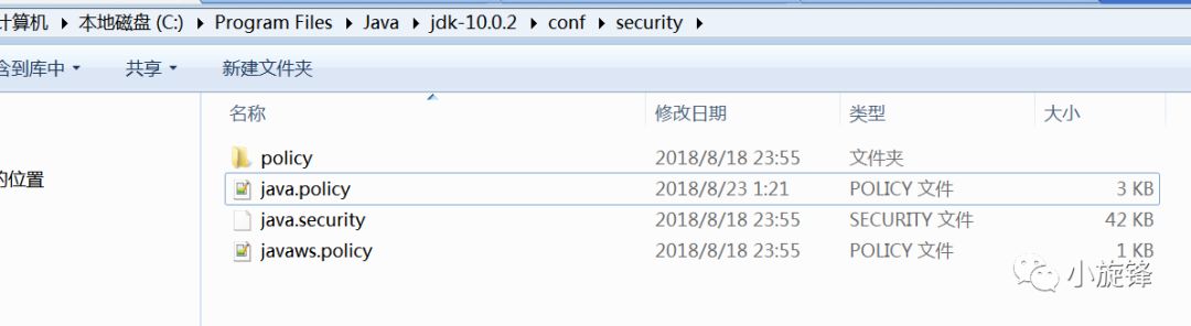 第二种: 就是在 %JAVA_HOME%/conf/security 目录下(JDK10是这个路径,之前的版本不确定),我的目录是 C:Program FilesJavajdk-10.0.2confsecurity,打开 java.policy文件,在 grant 中加入下面这句,赋予权限