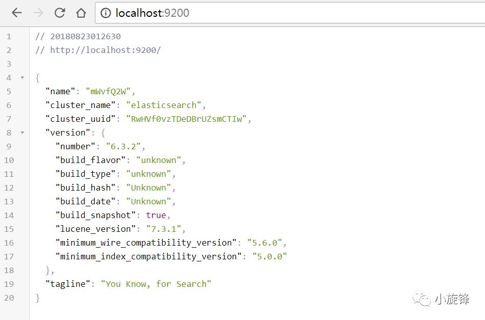 点击 debug,浏览器访问 http://localhost:9200/,即可看到ES返回的信息