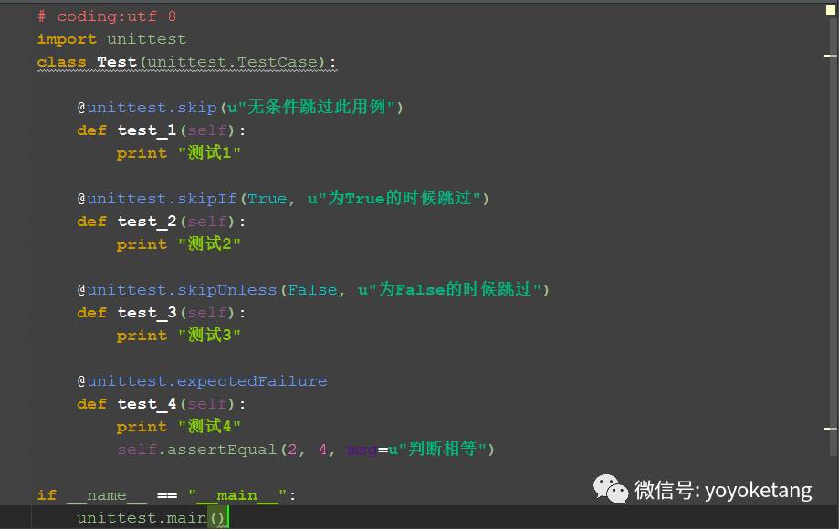 @unittest.skipUnless(False, u"为False的时候跳过")