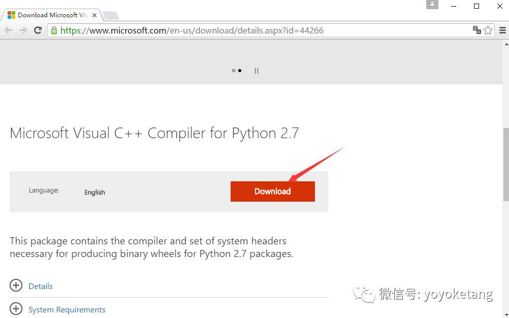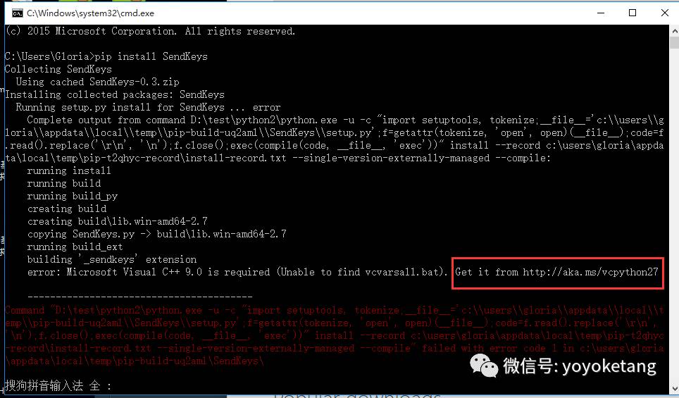 2.在安装的时候如果你出现上面保存,先别急着截图贴群求大神,上面已经告诉解决办法了:Get it from http://aka.ms/vcpython27