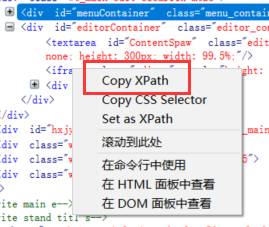 上图我们看到了iframe,然后把鼠标放到iframe上,右键选择copy xpath: