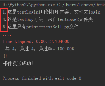 只有1、4、6打印出来了哦,其他的是不会打印的,也就是说你在用例里写的print是不会打印的,这是因为HTMLTestRunner.py规定的。船长试过自己修改过的可以打印用例里面的print了,但是会返回很多None,也就是说说出里面会有好多红色的None。如果你能忍受这些None(没有用),那就用船长修改过的HTMLTestRunner.py文件~~怎么修改船长前面介绍过。