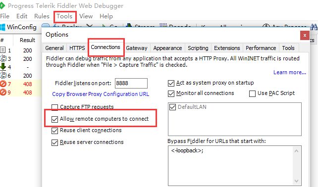 主机名就是自己电脑的ip地址,端口就是第一步(上面那个图里的8888那里就是端口)Fiddler listens on port:后面写的值。“不使用网址”那个栏不用管