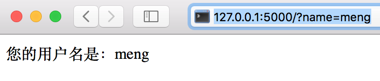 再通过查询字符串的方式给name传参:127.0.0.1:5000/?name=meng: