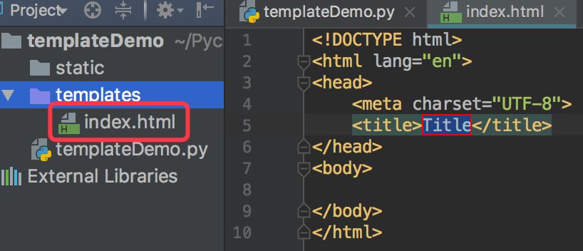 如上图所示,我们新建了一个名为index的HTML文件在templates文件夹下。