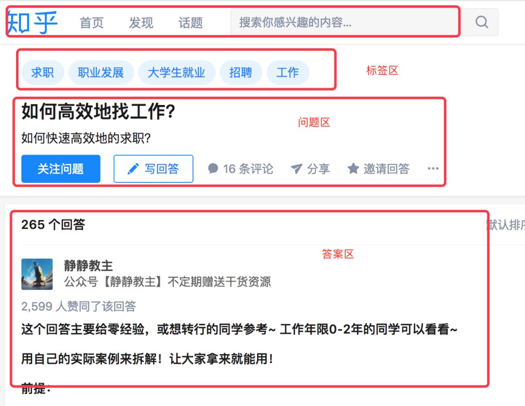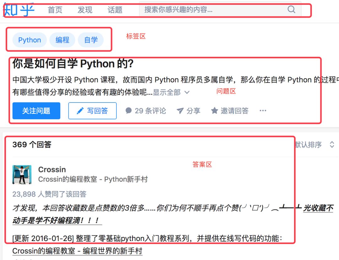 我们平时看的知乎平台就是Python开发的,可以看到他的很多页面布局都是一样的,比如你现在搜“如何自学Python”,去知乎看他的页面是这样的: