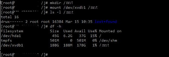 在下面的截图中,我们能看到一块数据盘:/dev/xvdb1