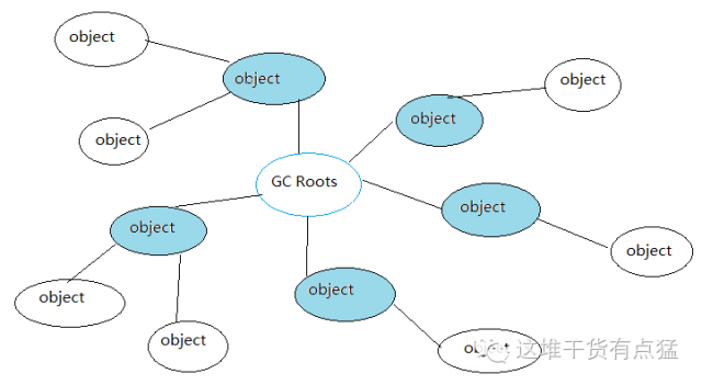 先介绍下每个过程的是什么意思,再来说他是怎么达到最短停顿时间这个目标的。初始标记是需要进行STW的,但仅仅只是标记GC Roots能够直接关联的对象(并不是死掉的对象哦~),由于有OopMap的存在,因此该步骤速度非常快。如图,其中蓝色底纹的便是能够直接关联的对象。
