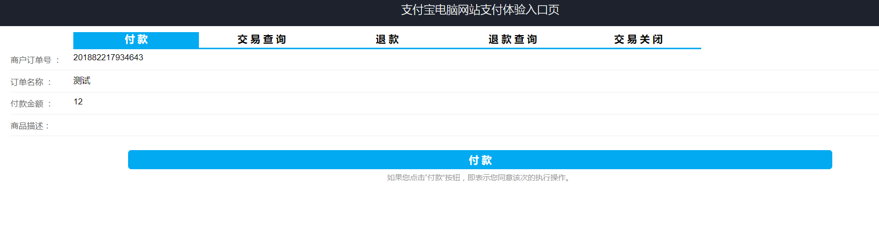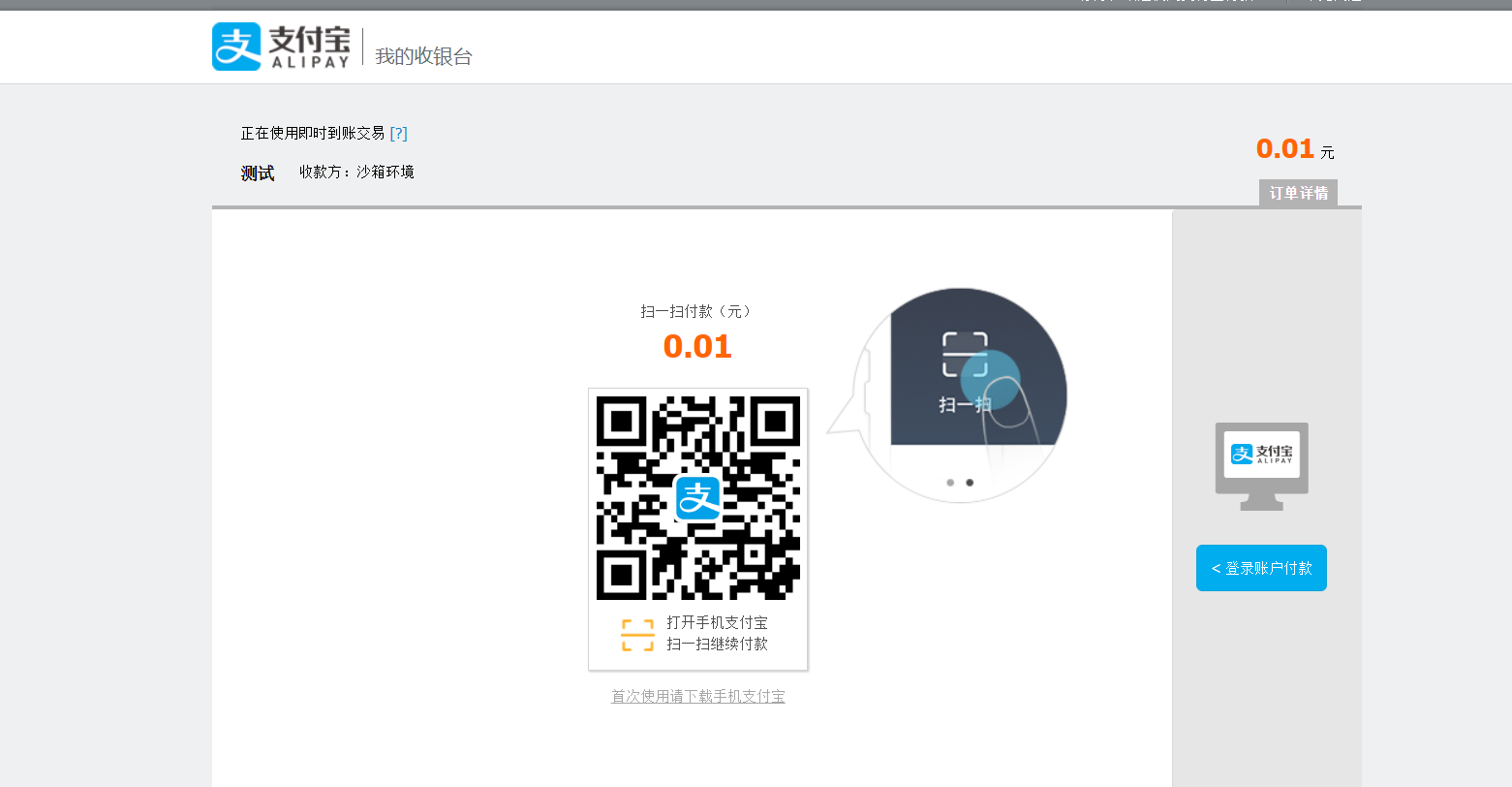 注意,这边是在沙箱模式下,如果真实模式下请保持原demo提供的