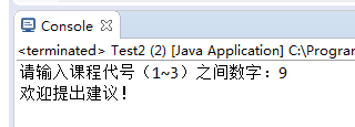 1、根据编号输出课程名称,不管输入是否正确,均输出“欢迎提出建议!”语句