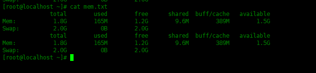 [root@localhost ~]# free -h | tee -a mem.txt > /dev/null
