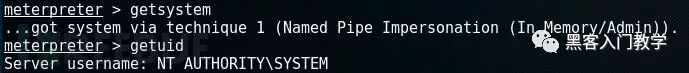 “getuid”命令可以获取当前用户的信息,在上面的例子中,用户为“NT AUTHORITYSYSTEM”,这个就是Windows本地系统账号。