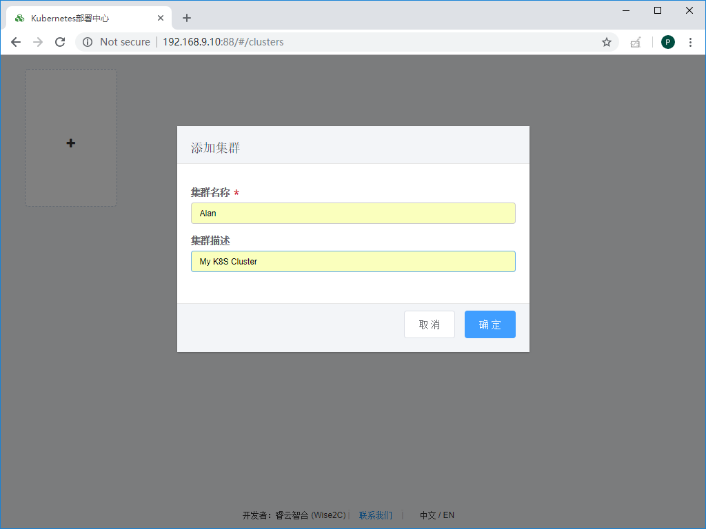 (1)点击开始按钮后,点击+图标开始添加一个集群: