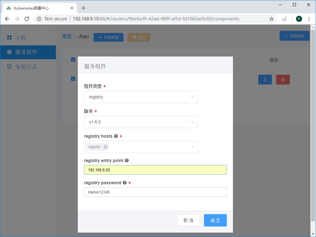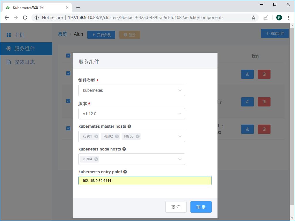 备注:这里kubernetes entry point是为了HA场景,比如此次试验我们在每一个k8s master节点同时各部署了haproxy和keepalived组件,其产生的虚IP是192.168.9.30,端口是6444,那么我们在这里应该填写为192.168.9.30:6444,如果您只安装一个master,那么可以填写为master的入口,例如192.168.9.11:6443