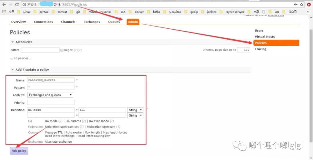 部署好了普通模式的集群,但因为节点间只同步队列结构并不进行消息的同步,对于一些可靠性要求较高的场景需要对队列中的消息也同步到所有节点。