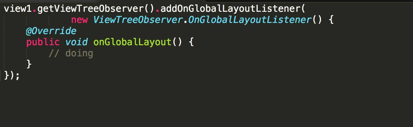 4)在onCreate()或onResume()等方法中需要获取宽高时使用getViewTreeObserver().addOnGlobalLayoutListener()