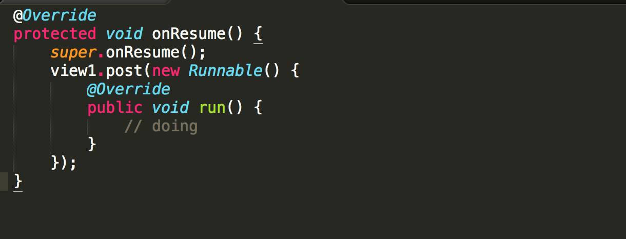 3)视图还未绘制完成,当然未绘制完成也表现在不同的方面,比如,activity所代表的界面还没显示出来没有添加到WindowPhone的DecorView上;要获取的view没有被添加到DecorView上。
