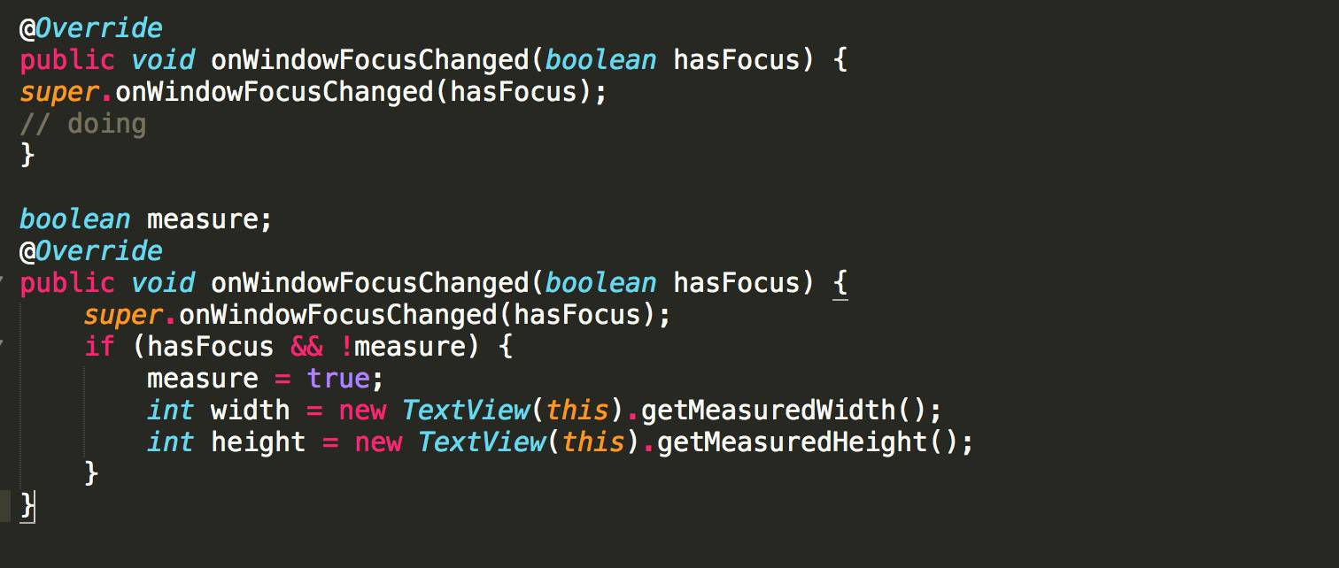 2)在activity被显示出来时即添加到了DecorView上时获取宽和高如 onWindowFocusChanged() 回调方法
