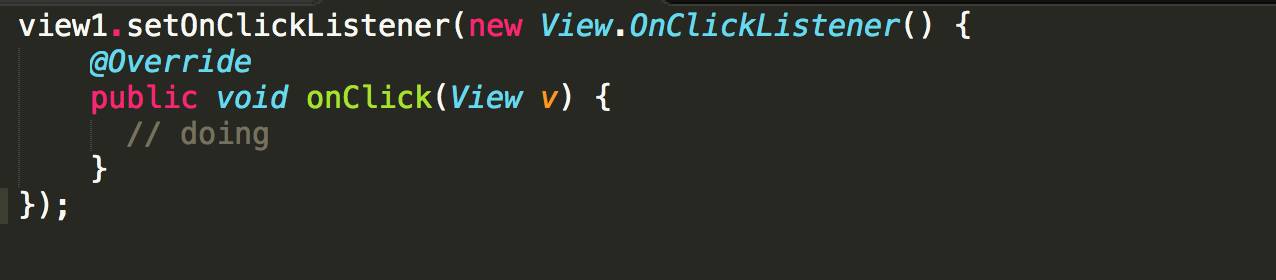 01.private GestureDetector mGestureDetector; 02.@Override 03.public void onCreate(Bundle savedInstanceState) { 04. super.onCreate(savedInstanceState); 05. mGestureDetector = new GestureDetector(this, new LearnGestureListener()); 06.} 07.@Override 08.public boolean onTouchEvent(MotionEvent event) { 09. if (mGestureDetector.onTouchEvent(event)) 10. return true; 11. else 12. return false; 13.} 14.class LearnGestureListener extends GestureDetector.SimpleOnGestureListener{ 15. @Override 16. public boolean onSingleTapUp(MotionEvent ev) { 17. Log.d("onSingleTapUp",ev.toString()); 18. return true; 19. } 20. @Override 21. public void onShowPress(MotionEvent ev) { 22. Log.d("onShowPress",ev.toString()); 23. } 24. @Override 25. public void onLongPress(MotionEvent ev) { 26. Log.d("onLongPress",ev.toString()); 27. } 28. @Override 29. public boolean onScroll(MotionEvent e1, MotionEvent e2, float distanceX, float distanceY) { 30. Log.d("onScroll",e1.toString()); 31. return true; 32. } 33. @Override 34. public boolean onDown(MotionEvent ev) { 35. Log.d("onDownd",ev.toString()); 36. return true; 37. } 38. @Override 39. public boolean onFling(MotionEvent e1, MotionEvent e2, float velocityX, float velocityY) { 40. Log.d("d",e1.toString()); 41. Log.d("e2",e2.toString()); 42. return true; 43. } 44.}