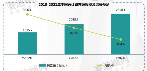 预计未来三年,中国云计算市场规模仍将保持35%以上的增长速度,到2021年,市场规模将达到2828.1亿元,增长率达到35.4%。