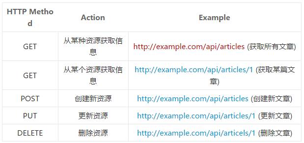 REST Web 服务的核心概念是资源(resources)。资源被 URI(Uniform Resource Identifier, 统一资源标识符)定位,客户端使用 HTTP 协议操作这些资源,我们用一句不是很全面的话来概括就是:URI 定位资源,用 HTTP 动词(GET, POST, PUT, DELETE 等)描述操作。下面列出了 REST 架构 API 中常用的请求方法及其含义: