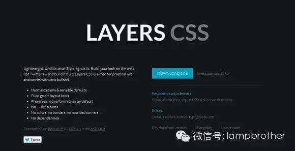Layers CSS是一款轻量级的CSS框架,它集中处理了主要的样式结构,支持响应式布局。