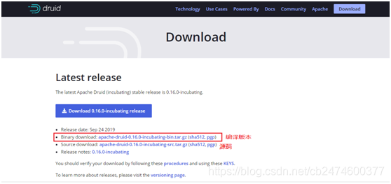 官网:https://druid.apache.org,进入官网后点击“Download”,进入下载界面,当前最新版本0.16,这里我们选择编译版本下载;
