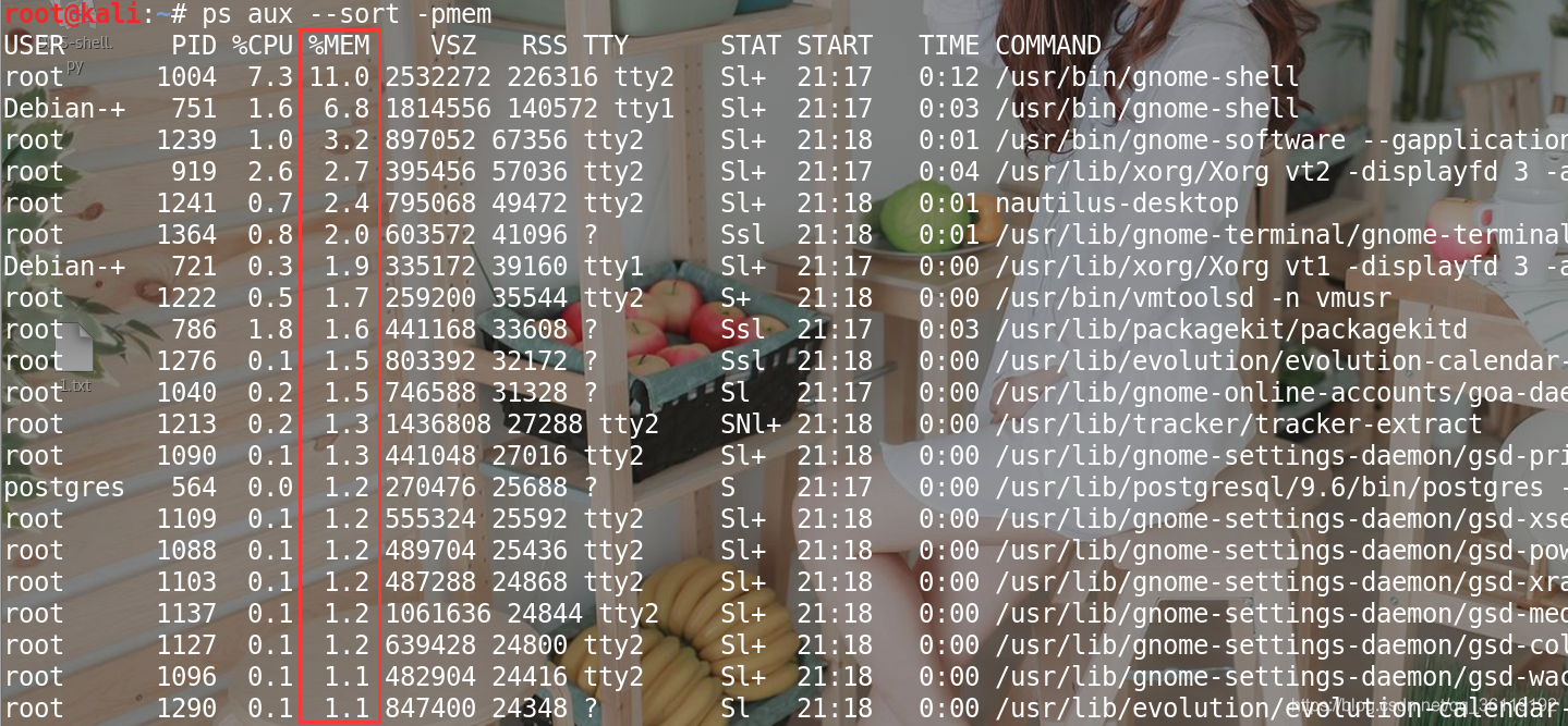 如果想通过内存来排序,可以加参数: --sort -pmem
