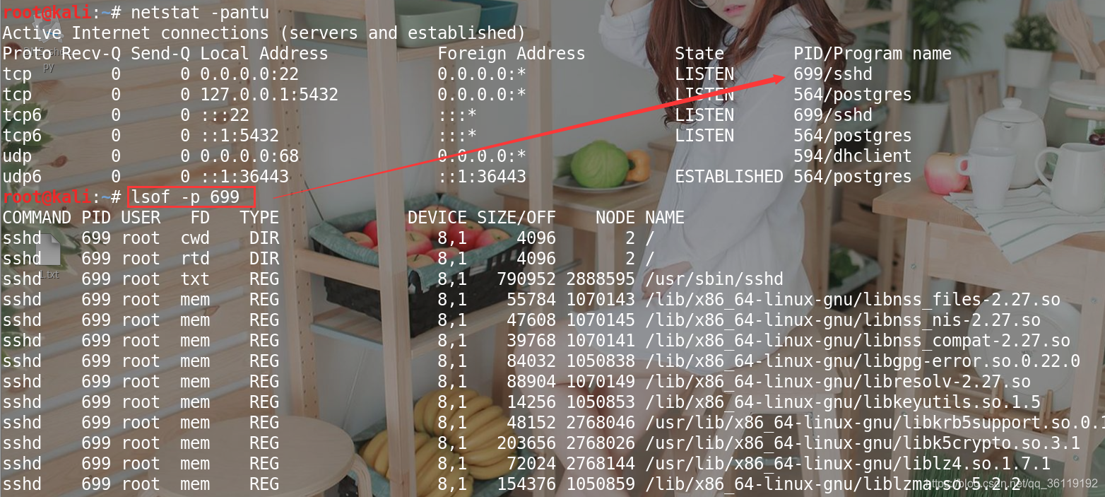 lsof -p 699 #显示PID为699的进程打开的所有文件