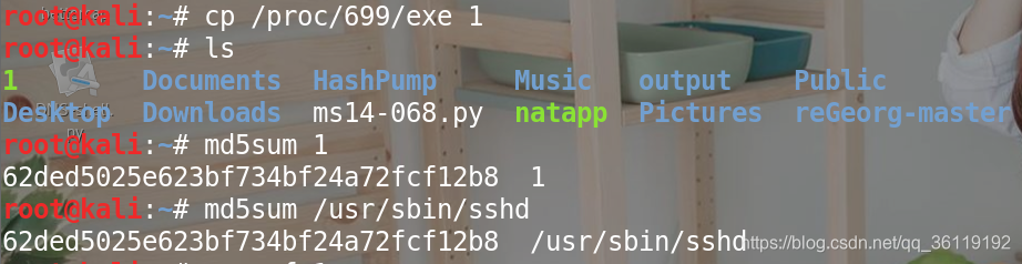 cp /proc/699/exe 1 #复制PID为699的进程的启动程序为1