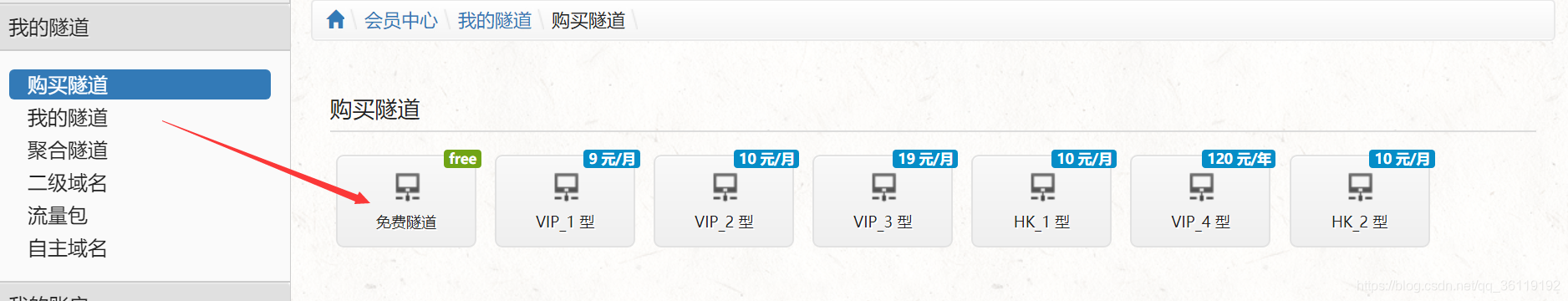 这里我已经购买过了,所以点击我的隧道,这里可以修改你直接买的配置