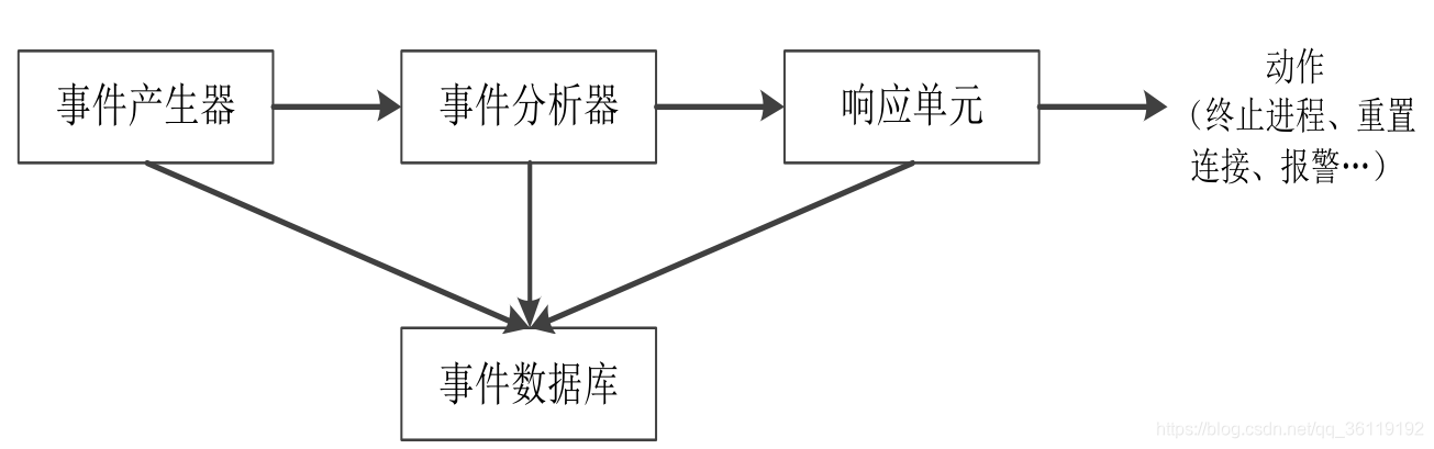 - 事件分析器:分析数据,发现危险、异常事件,通知响应单元