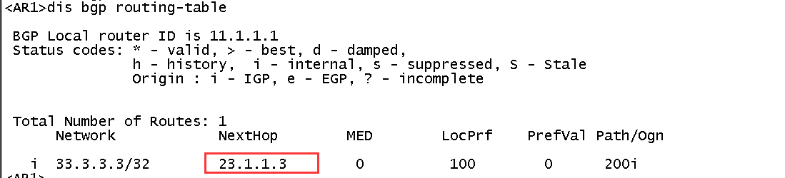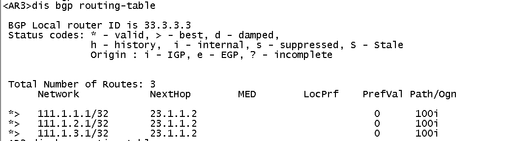 比如,AR3宣告33.3.3.3的路由,在R1上收到的BGP信息是这样的